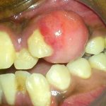 Флюс (периостит) – воспалительное гнойное заболевание надкостницы, вызванное проникновением инфекции из кариозной полости в пульпу. В верхушечной зоне корня развивается периодонтальный абсцесс – наполненная гноем полость. Гной попадает внутрь десневой ткани, она воспаляется, опухает, формируется отек. Снаружи флюс выглядит как шишка или мешочек с гнойным содержимым.
