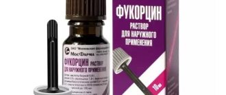 Фукорцин используется для обеззараживания ранок, профилактики их нагноения и купирования уже начавшегося процесса. Подходит для лечения гнойных и грибковых заболеваний кожи. Его применяют при ссадинах, эрозивных ранах, прыщах на лице. Стоимость флакона Фукорцина (25 мл) составляет примерно 40 рублей.