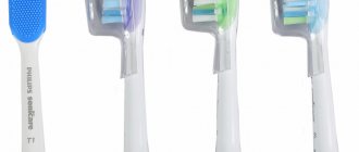 - Types of replacement nozzles . Modern models are equipped with several types of attachments. Sometimes the product comes with additional attachments for massaging the gums or cleaning the tongue, but only one is required - the standard one.