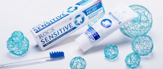 The main feature of this paste is the minimum level of abrasiveness among all products in the line. It is recommended to be used to relieve increased sensitivity of crowns. The main active substance in its composition is potassium nitrate. This is a substance that has a strong analgesic effect on the nerve fibers located in the tooth pulp. The effect appears within a couple of minutes after applying the product to the tooth surface.