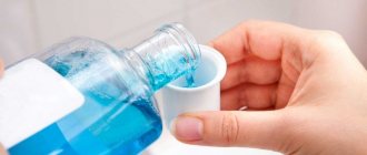 A good mouth rinse, which contains active ingredients based on essential oils (menthol, thymol, eucalyptus, salicelate), and does not contain alcohol. These components kill harmful bacteria and keep your breath fresh. The liquid has a pronounced peppermint flavor.