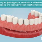 - The finished structure is tried on in the oral cavity and fixed with special cement.
